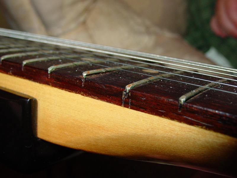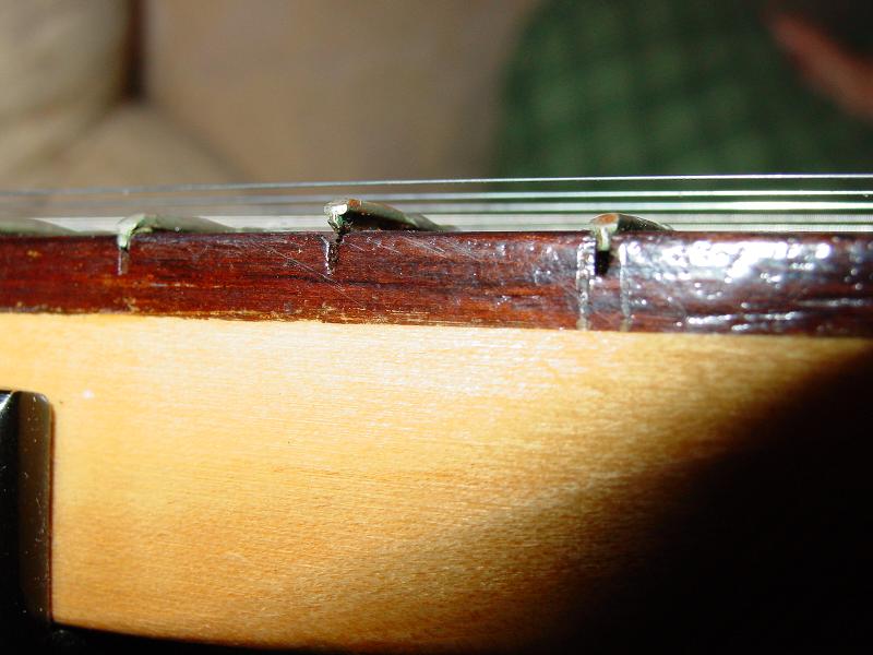 Here are some of the frets. A few have popped out of the fretboard. I wonder if a new Stratocaster would sound better than this guitar.